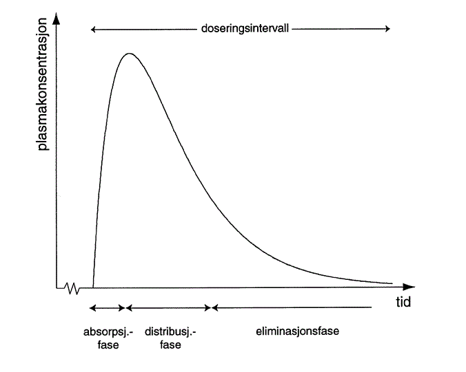 Figur G2.6 Et typisk plasmakonsentrasjonsforløp i et doseintervall.