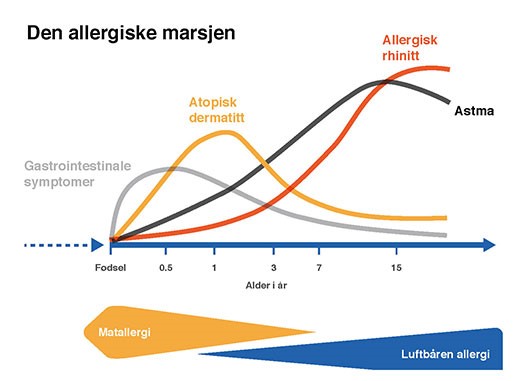 Figur 1: Relativ insidens av allergiske sykdommer i forhold til alder
